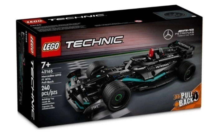 O LEGO® Technic Mercedes-AMG F1 W14 E Performance Pull-Back propõe a construção de 1 carro de corrida divertido para crianças