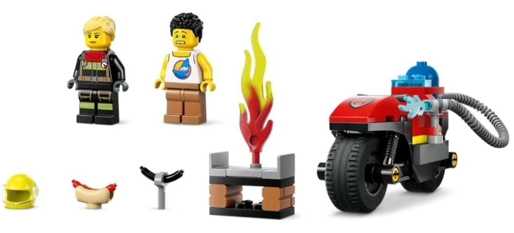 Brinquedo de bombeiro divertidoCrianças maiores de 4 anos vão viver grandes emoções e aventuras com o conjunto LEGO® City Motocicleta dos Bombeiros. Brincadeira imaginativa para os pequenosConstrutores maiores de 4 anos podem usar peças LEGO® modulares e uma Peça Inicial pré-moldada para começar a construção. Uma motocicleta muito legalEla tem pneus superlargos e um extintor de incêndio. Cenário de incêndioOs bombeiros correm para salvar o dia (e o cachorro-quente)! Oportunidades de faz de contaInclui minifiguras de bombeira e churrasqueiro. Primeiros passos para o sucesso da construçãoMergulhe na magia das brincadeiras com LEGO®, uma ótima forma de desenvolver a confiança e criatividade das crianças. Brincadeiras sem limites!Combine este conjunto com outros da linha LEGO® City (vendidos separadamente) para mais aventuras cheias de diversão!