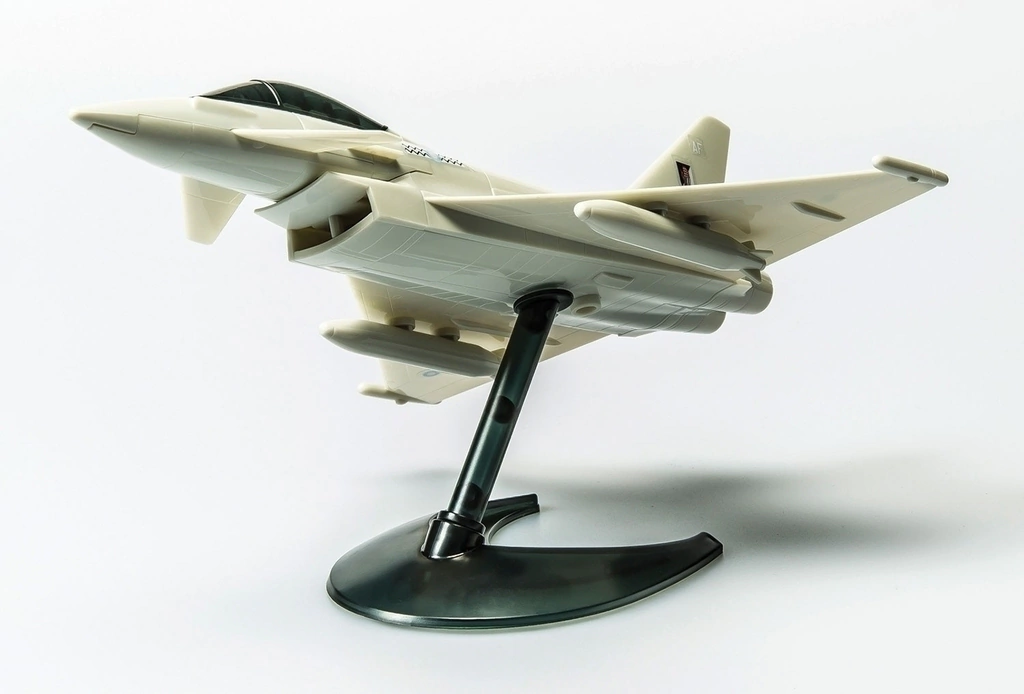 O Eurofighter Typhoon foi construído para resistência! Desenvolva sua coleção e adicione este modelo de aeronave liso, rápido e simplificado. Este modelo tem um total de 27 partes, com 3 partes adicionais para o suporte. A altura do modelo quando colocada no suporte é de 129 mm.