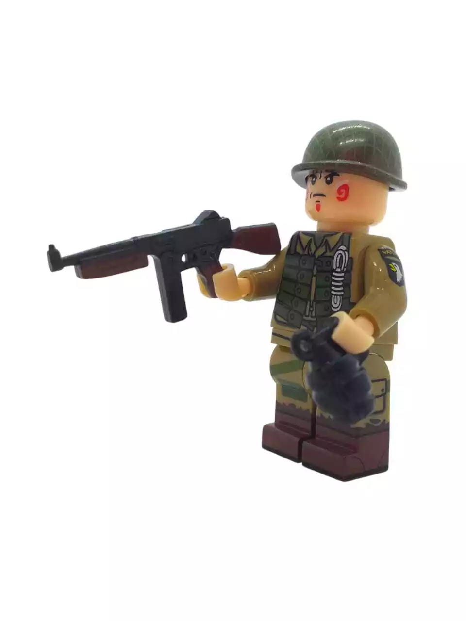 01 MINIFIGURA MILITAR COMPATÍVEL LEGO + ACESSÓRIOS DIVERSOS E ALEATÓRIOS: (CANTIL, FACA, FACÃO, MACHADINHA, GRANADA, BINÓCULO, CHAVE INGLESA, MARTELO, ALICATE DE CORTAR CERCAS...)